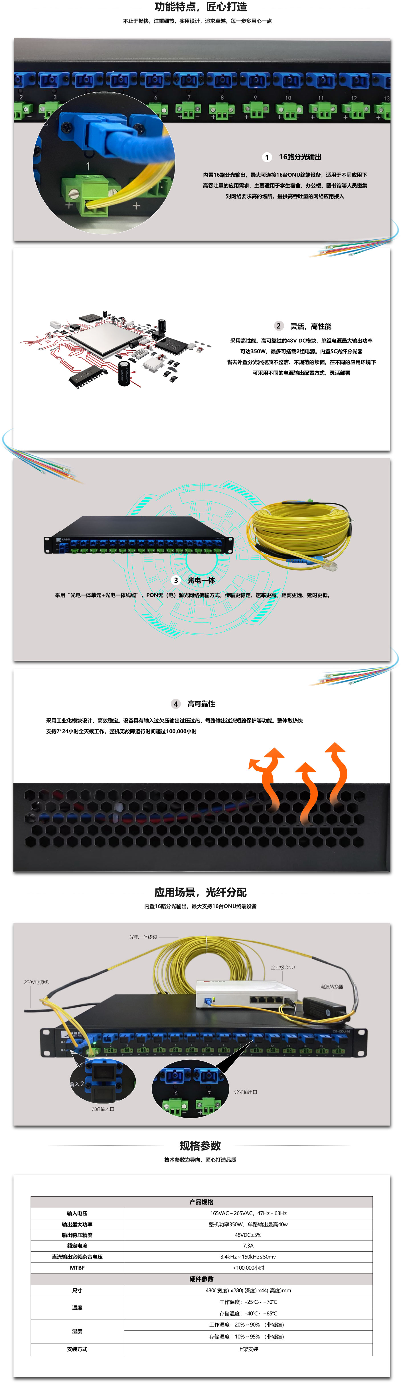 CG-OPSU是(shì)一(yī)款1U機(★γ♠>jī)架式遠(yuǎn)程供電(diàn)單元,集成SC光λ>πγ(guāng)纖分(fēn)光(guāng)器(qì),是(shì)專門(mén)為(✔βwèi)光(guāng)網絡應用(yòng)設計(jì)開(kāi)發的(de)一(yīπ¥$)款遠(yuǎn)程供電(diàn)電(diàn)源。該供電(diàn)♠'∑單元在165VAC~280VAC輸入電(diàn)壓內(nèi)都(dōu)能(nénε g)正常工(gōng)作(zuò),與網絡設備之間(jiān)通(tōng)過Ω 複合光(guāng)纜連接