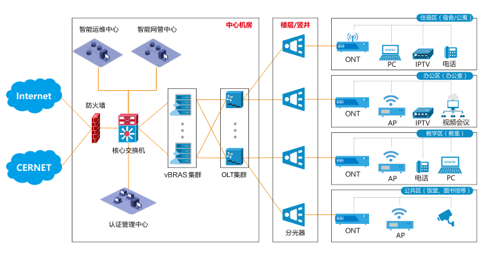 本組網模型充分(fēn)發揮了(le)邊緣雲的(de)高(gāo)性能(néng)、高(gāo)擴♥₽展性、高(gāo)靈活性及高(gāo)性價比等特點,又(yòu)保留傳統光(guāng)接入∞÷∏網電(diàn)信級運營屬性(高(gāo)可(k±¶ě)靠、可(kě)運營、可(kě)管理(lǐ))。通(tōng)過設計(jì)适合企業(yè)應用(yòng)場(chǎng)景的(©✘εde) NFV 網元配合 ONU,構成高(gāo)效的(de)端到(dào)端智慧通(tōng)道(dào),α∞實現(xiàn)可(kě)管控的(de)彈性管道(dào×£)管理(lǐ)、可(kě)感知(zhī)的(dεσ≤e)管道(dào)管理(lǐ)、可(kě)靈活流量疏導管理(lǐ)等功能(néng)。