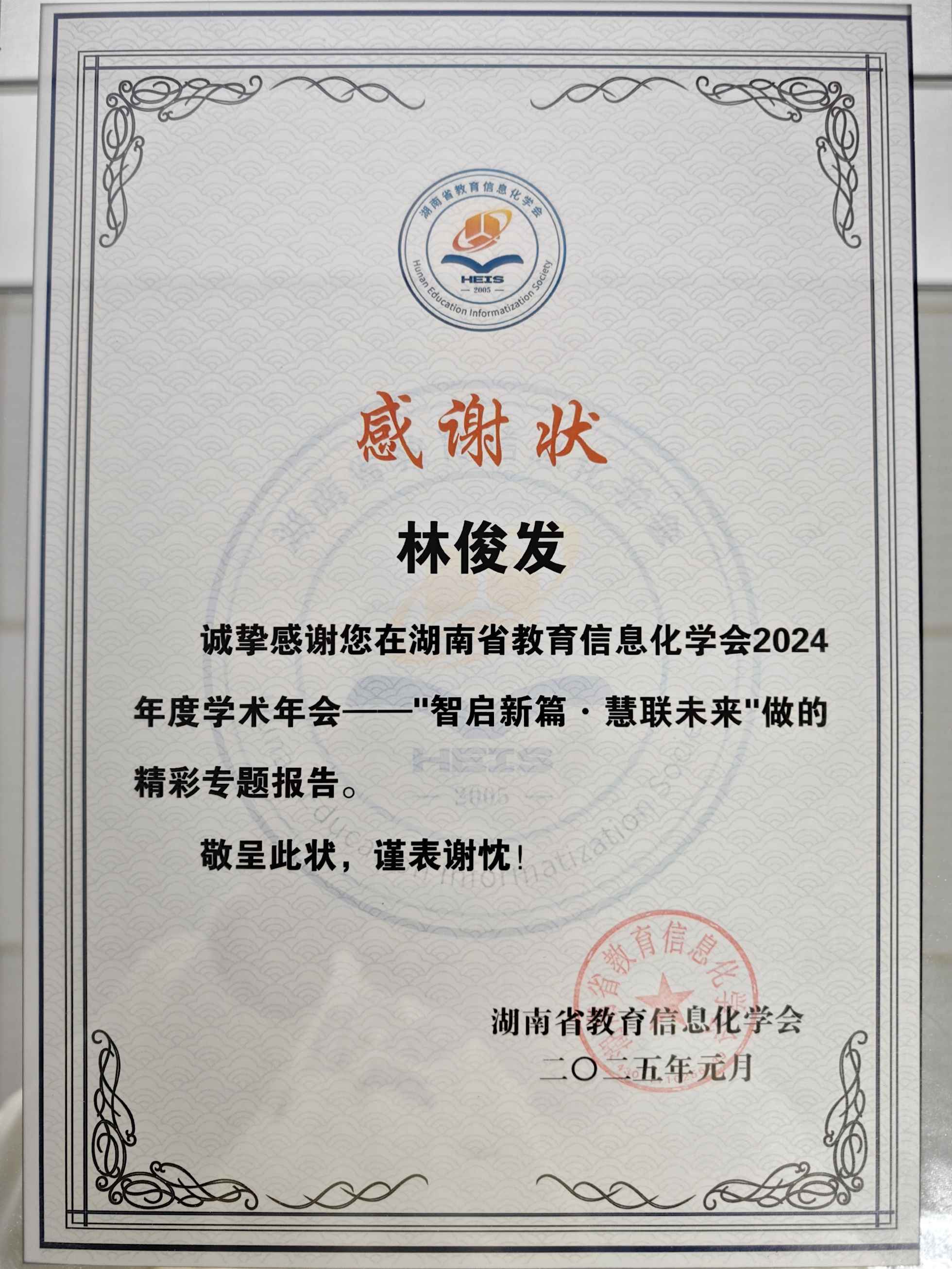 湖(hú)南(nán)省教育信息化(huà)學會(huì)感謝(x← iè)狀